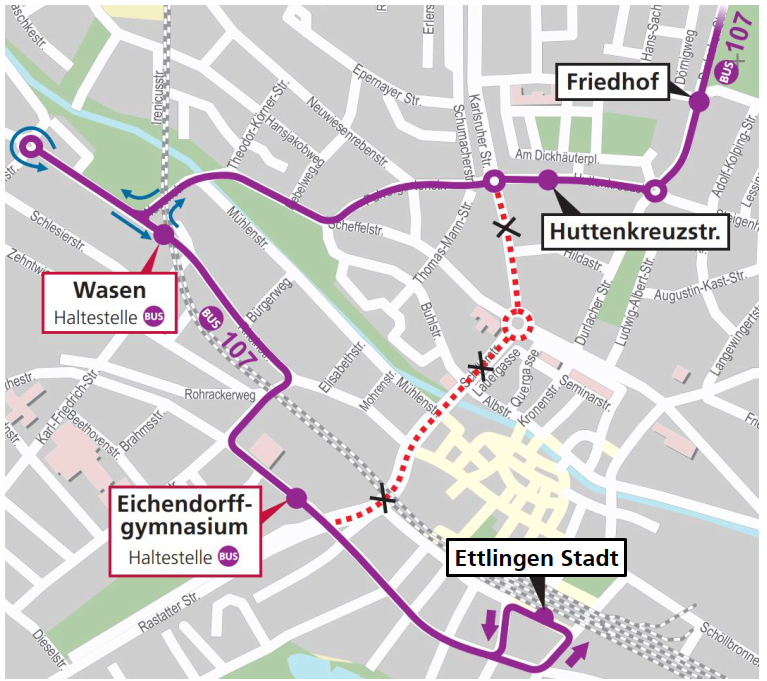 (kue) Wegen des Rosenmontagsumzugs in Ettlingen wird die Buslinie 107 am