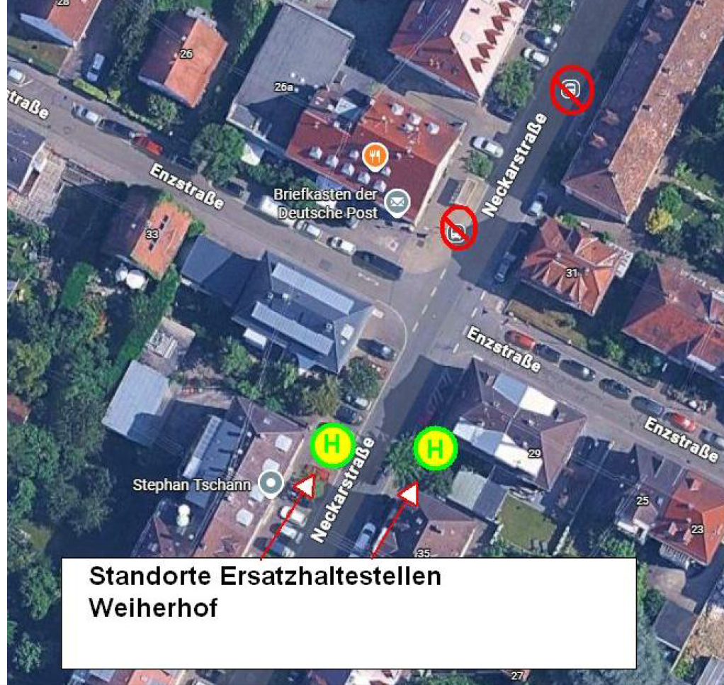 werden in der Neckarstraße beide Steige der Haltestelle Weiherhof nacheinander